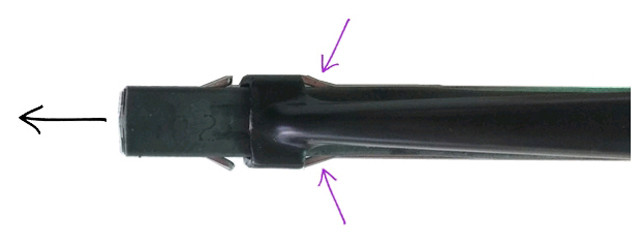 3. 조립 시 검은 화살표 반대 방향으로 루벌르 밀어넣고 마지막 돌기 부분에서 힘을주어 당겨줍니다.